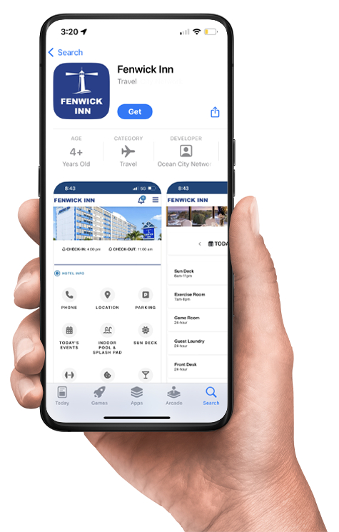 Discover a whole new way to plan your stay with the Fenwick Inn app! From booking your perfect room to exclusive offers, perks, and a full guide to Ocean City, Maryland, our app gives you everything you need to make your stay unforgettable.